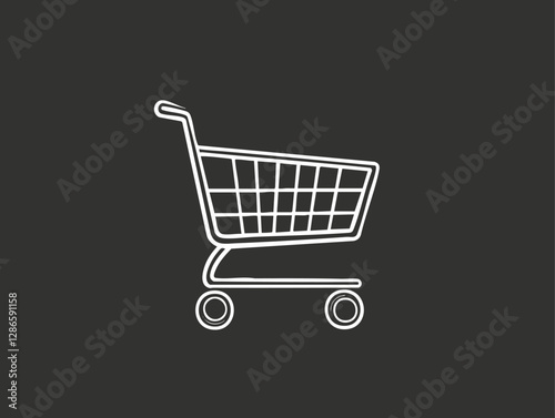 Simple white shopping cart icon on a black background.