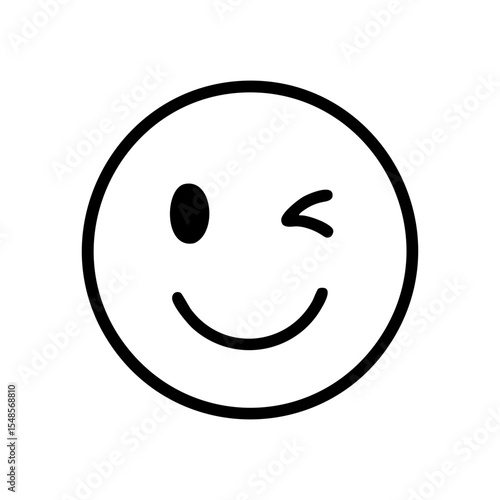 Simple winking smiley face icon in black outline, playful and minimal design, representing fun, emotion, joy, or humor.