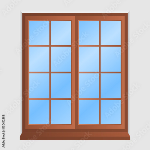 Simple Wooden Frame Window Vector. Double Wooden Window Element on White Background. Simple Window Icon.