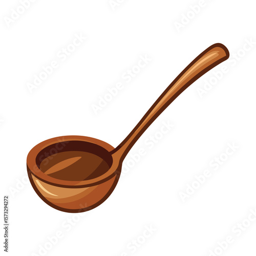 Simple wooden ladle with a deep bowl and long handle for serving soup