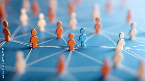 Simplified human figure network concept people on round podiums connected by thin lines, a social media community and connection idea background,