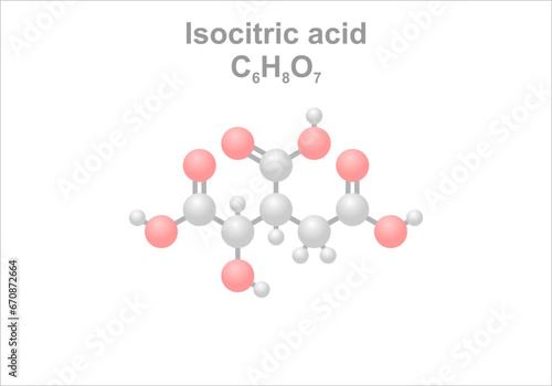 Simplified scheme of the isocitric acid molecule. Occurs in fruit like apples or pears.