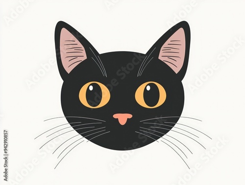 Simplistic black cat face icon in a minimalist vector design, flat style perfect for Halloween, on white.