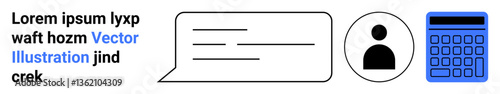 Simplistic design with a text box, user avatar, and calculator. Ideal for communication, messaging, user interface, analysis, technology, education and simple landing page