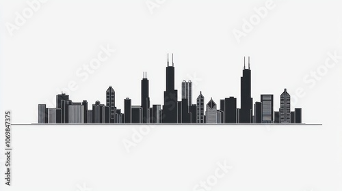 Simplistic outline of Chicago skyline with minimalistic lines capturing iconic skyscrapers against a plain background