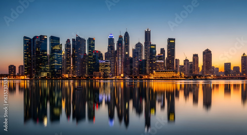 Singapore Skyline at Dusk: Captivating Cityscape Reflection on Calm Waters