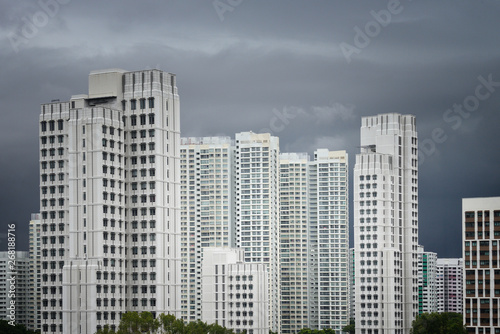 Singaporean high rise apartment buildings on a dark sky