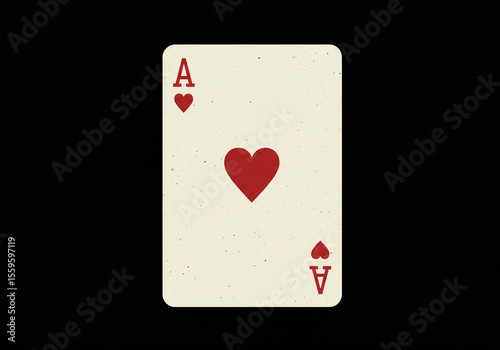 Single ace of hearts playing card with red heart suit on a black isolated studio background