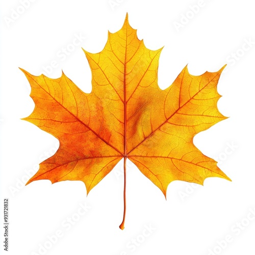 Single Autumn Maple Leaf Isolated on White Background
