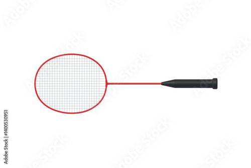 Single badminton racket isolated on white background. Sports equipment. Top view. 3d render