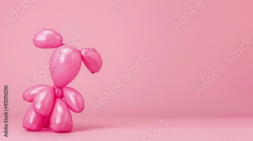 Single balloon dog on pastel pink background Love card Layout Flat design : Generative AI
