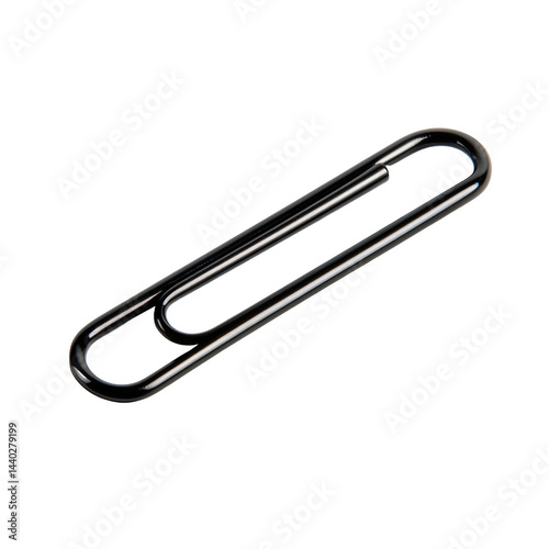 Single Black Metal Paper Clip Crisp Image isolated on a transparent background