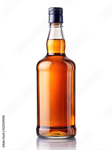 Single bottle of amber whiskey - A single bottle of amber whiskey, perfect for premium spirits, whiskey collectors, and luxury drinking occasions.