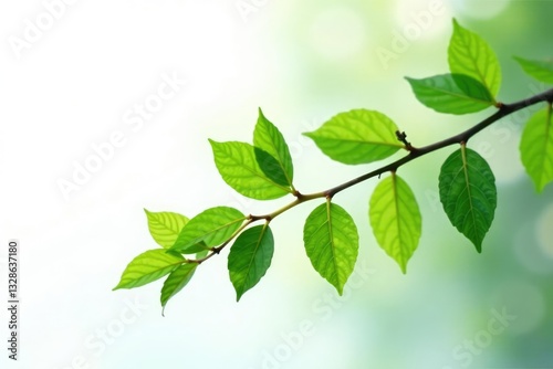 Single branch on white background isolated with subtle lighting effects, simple, foliage