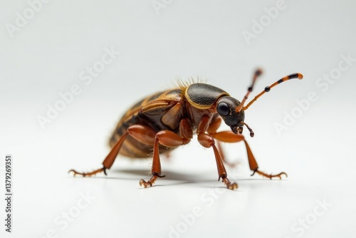 Single bug meticulously isolated against stark white backdrop, photography, studio, macro