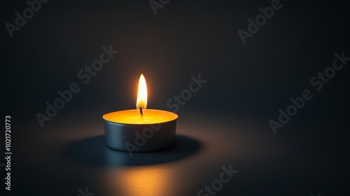 Single Candle Flame on Dark Grey Background, Cozy Ambiance Generative AI