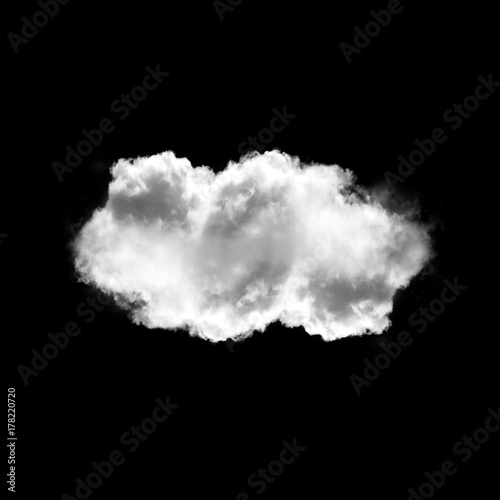 Single cloud isolated over black background, realistic cloud shape 3D illustration