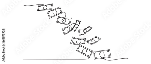 Single continuous line drawing of falling Dollar money. concept one line draw. Vector black silhouette. with white background
