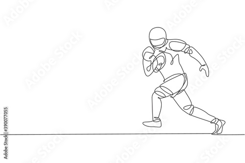 Single continuous line drawing of young agile man american football player run fast to avoid rival team for competition media. Sport exercise concept. Trendy one line draw design vector illustration