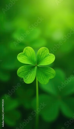 Single four-leaf clover, blurred green backdrop, leaf, lucky, macro