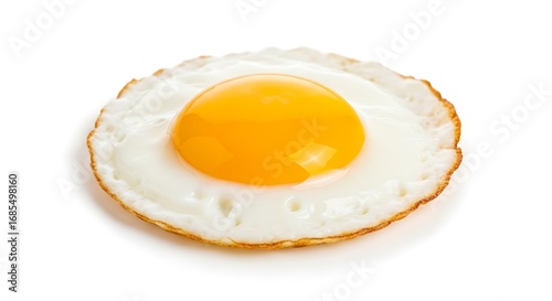 Single Fried Egg with Bright Yellow Yolk and Crisp Edges on White Background
