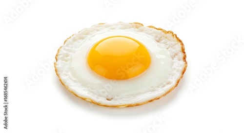 Single Fried Egg with Bright Yellow Yolk and Crispy Edges on White Background