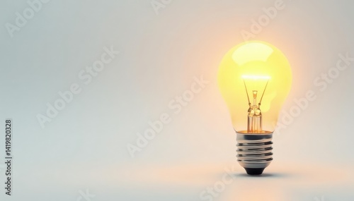 Single glowing lightbulb isolated on white background , simple, isolated