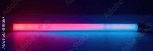 Single glowing neon tube, stark dark backdrop , line, illumination, technology