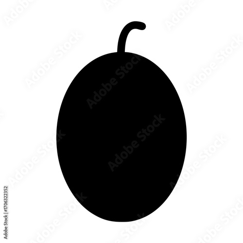 Single grape fruit silhouette simple icon-Black silhouette illustration of a grape with stem, minimal fruit icon suitable for vineyard, farming, nutrition, or design purposes.