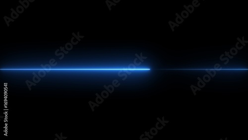 Single Horizontal Neon Blue Light Line Extending Across a Black Background photo