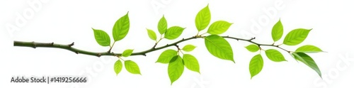 Single isolated branch with leaves on white background, botanical, nature scene, green