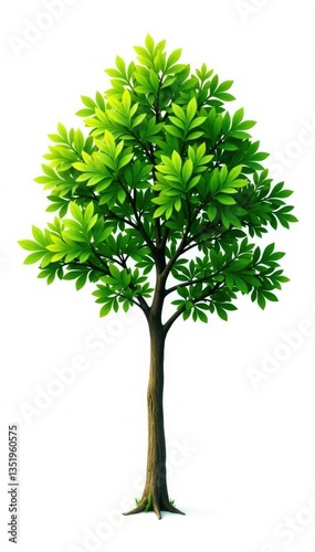 Single isolated tree branch on white background, foliage, peaceful