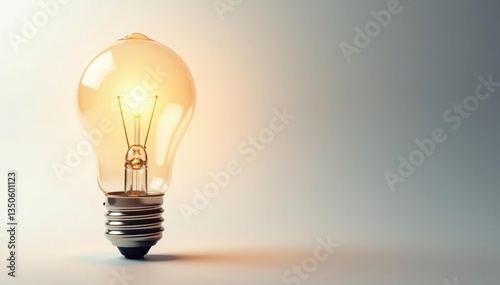 Single lightbulb, glowing filament against pure white , achievement, abstract