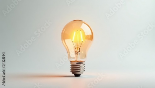 Single lightbulb, glowing filament against pure white background, bulb, idea, solution