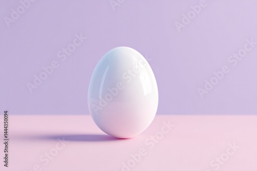 single opalescent egg on unblemished pastel surface casting soft shadow encompassed by ample copy space