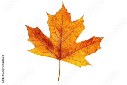 Single orange maple leaf autumn foliage fall nature black background, isolated on transparent background