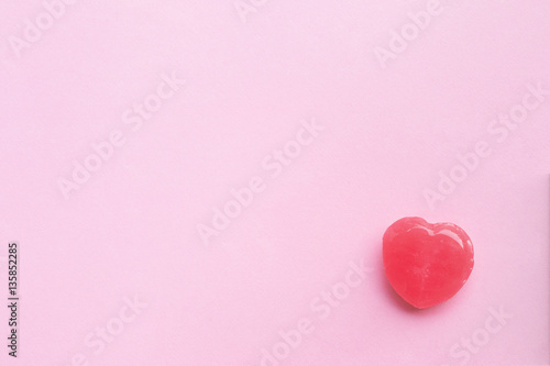 single Pink Valentine's day heart shape candy on empty pastel pi