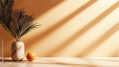 Single Plant Shadow on Beige Background, Ideal for Simple and Elegant Minimalist Designs
