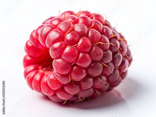 Single Raspberry Close-Up Minimalist White Background Stock Photo