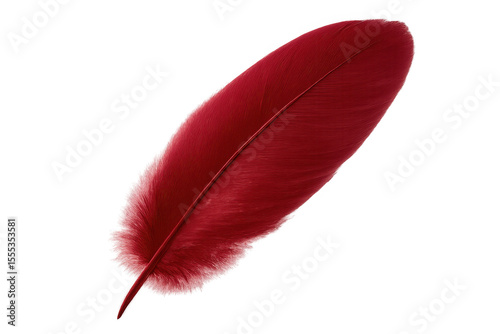 Single red feather isolated on transparent background, ideal for graphic design projects requiring a touch of elegance and nature
