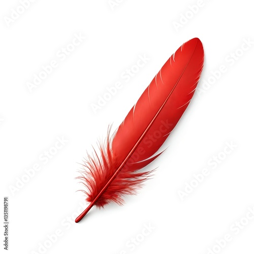 Single Red Feather on White Background