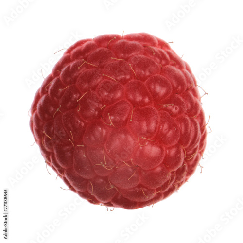 single red fresh raspberry isolated on white background