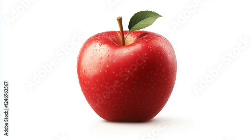 Single ripe red apple with a glossy surface resting on a clean white background showcasing its freshness and juiciness
