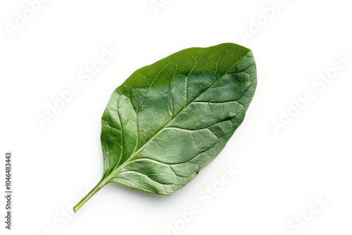Single spinach leaf on white background