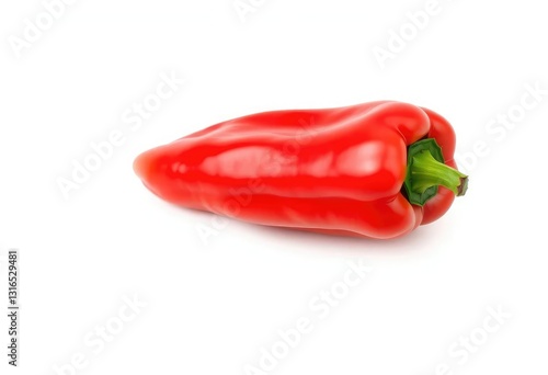 Single vibrant red bell pepper, isolated on pure white background, single, farm