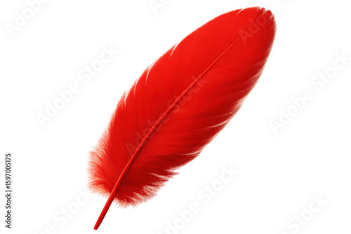 Single, vibrant red feather is isolated on a transparent background, ready for graphic design projects
