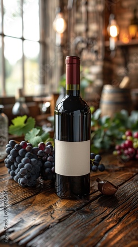 Single Wine Bottle Mockup in Natural and Kitchen Settings Customizable Blank Label for Personalized Branding