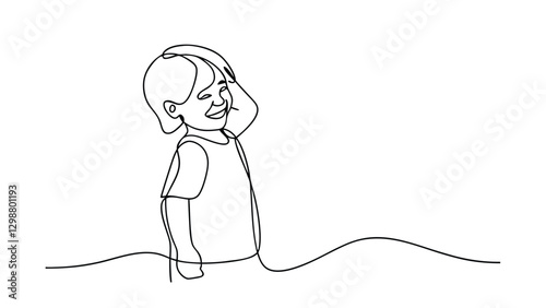 Singleline Child Drawing, Happy Expression, Joyful Kid, Line Art