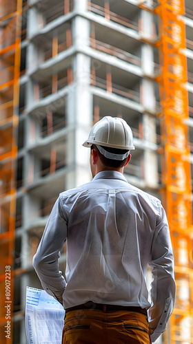 Site Supervisor Ensuring Progress: Realistic Photo of Project Review and Efficiency in Development Plan