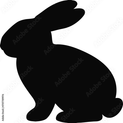 Sitting Bunny Silhouette Isolated Vector Icon, Minimal Rabbit Outline Symbol Illustration